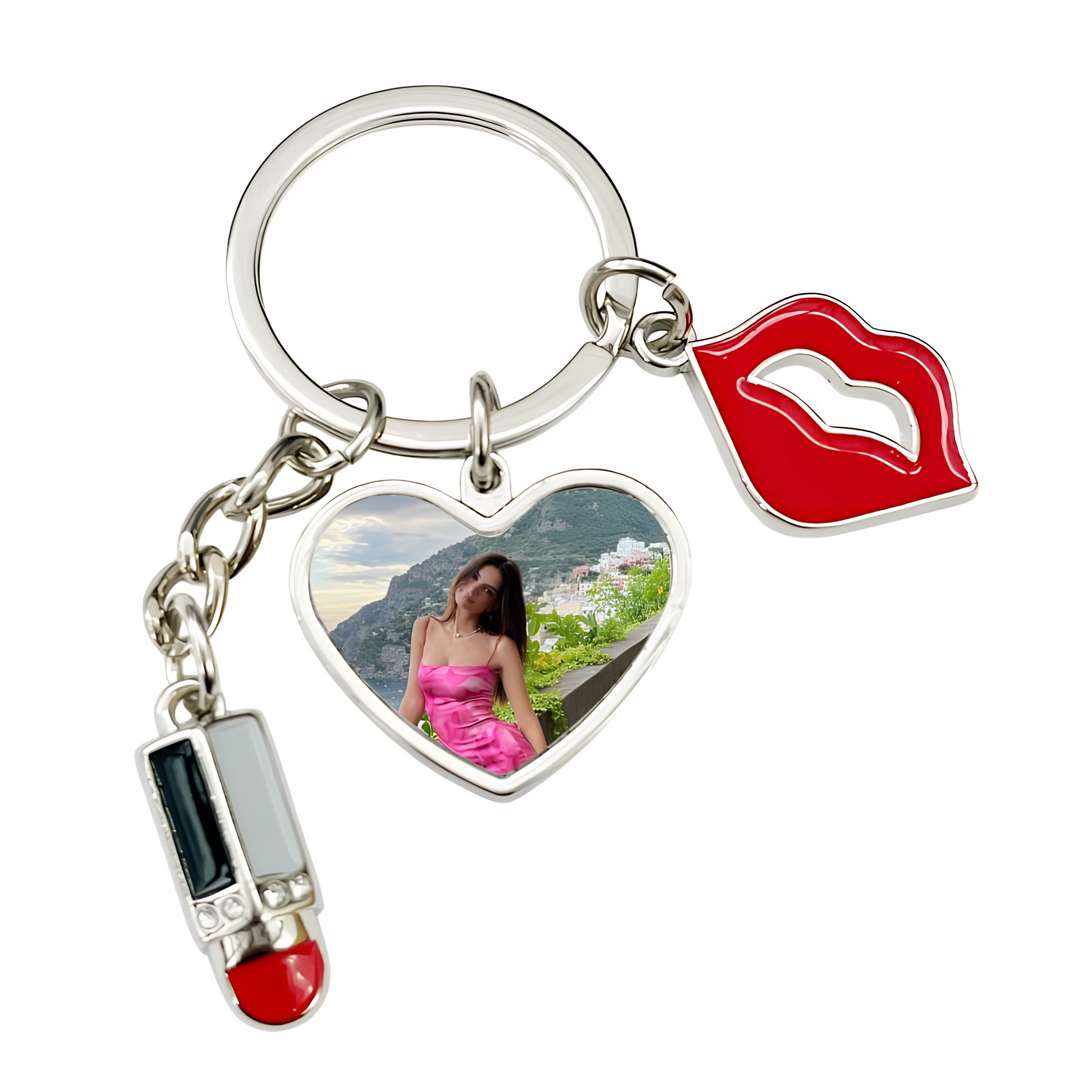 Este delicado llavero combina un corazón y un beso en un diseño elegante y romántico. 👄💄