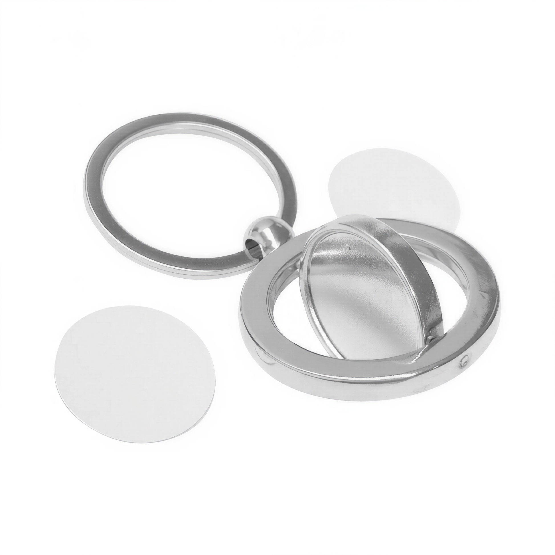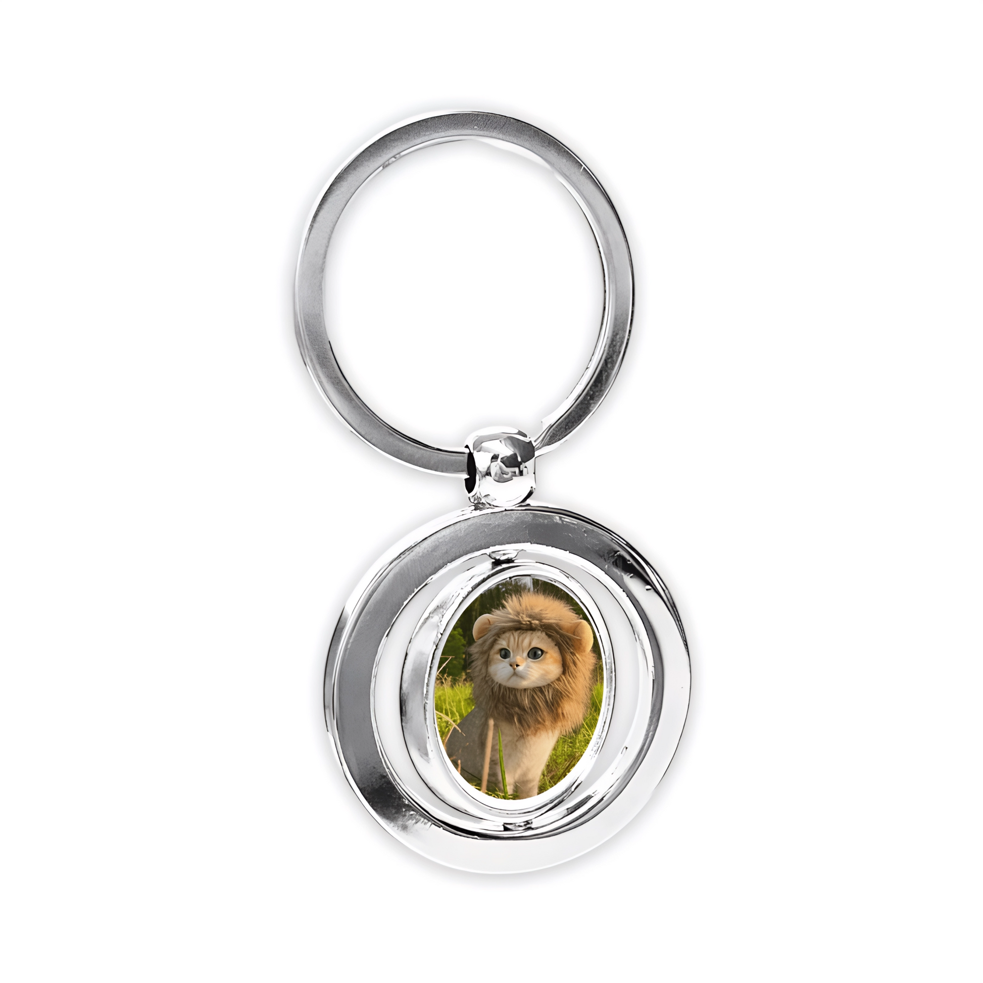 Este llavero en acero, doble cara, cuenta con dos laminas personalizables, lo que le da un toque moderno y dinámico. Personalízalo como más te guste, con tu foto o logo, para llevar tus recuerdos siempre contigo.